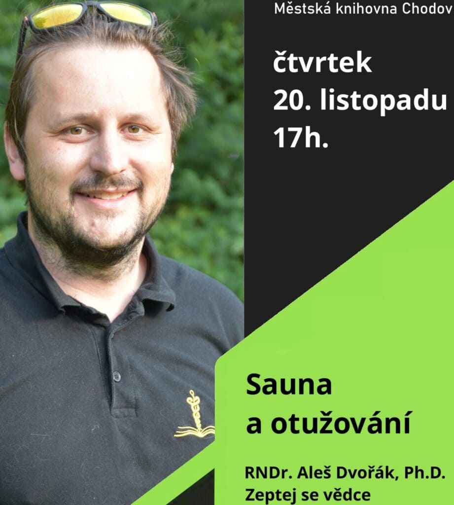 V listopadu se do Chodova vrací biochemik Aleš Dvořák, tentokrát s tématem Sauna a otužování. Jak tyto dva moderní trendy pro zlepšení zdraví a fyzické kondice fungují na biochemické úrovni? A mohou opravdu pomoct k posílení zdraví, regeneraci a oddálení stárnutí?